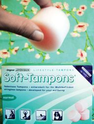 Higiena je pol zdravja, tudi med seksom. Kaj torej storiti v “tistih dneh”, ko vse kaplja in curlja, želja po brezmadežnem spolnem odnosu pa je enako močna kot menstruacija? Tadam! “Soft tamponi so bili razviti na podlagi najnovejših ginekoloških raziskav za higienski spolni odnos med menstruacijo.” Seveda jih je mogoče uporabljati tudi v manj vročih situacijah, na primer v savni, med plavanjem ali pri ostalih športnih aktivnostih. Roza valjčki s premerom pet centimetrov so izdelani iz biokompatibilne netoksične pene. V eni škatlici je deset sterilnih, posamično pakiranih tamponov. Pred uporabo jih ob straneh stisnete skupaj in s sredincem potisnete na konec tunela naslade. Bojazen, da bi tampon med odnosom zlezel kam drugam, je odveč. Ker nimajo vrvice, se tudi odstranijo s pomočjo v peno zarezane luknjice in pincetnega prijema. “Tamponi nove generacije” so dermatološko in klinično testirani, brez kemičnih snovi, ki bi lahko povzročile draženje - za tega boste morale poskrbeti kar same oziroma s partnerjem.